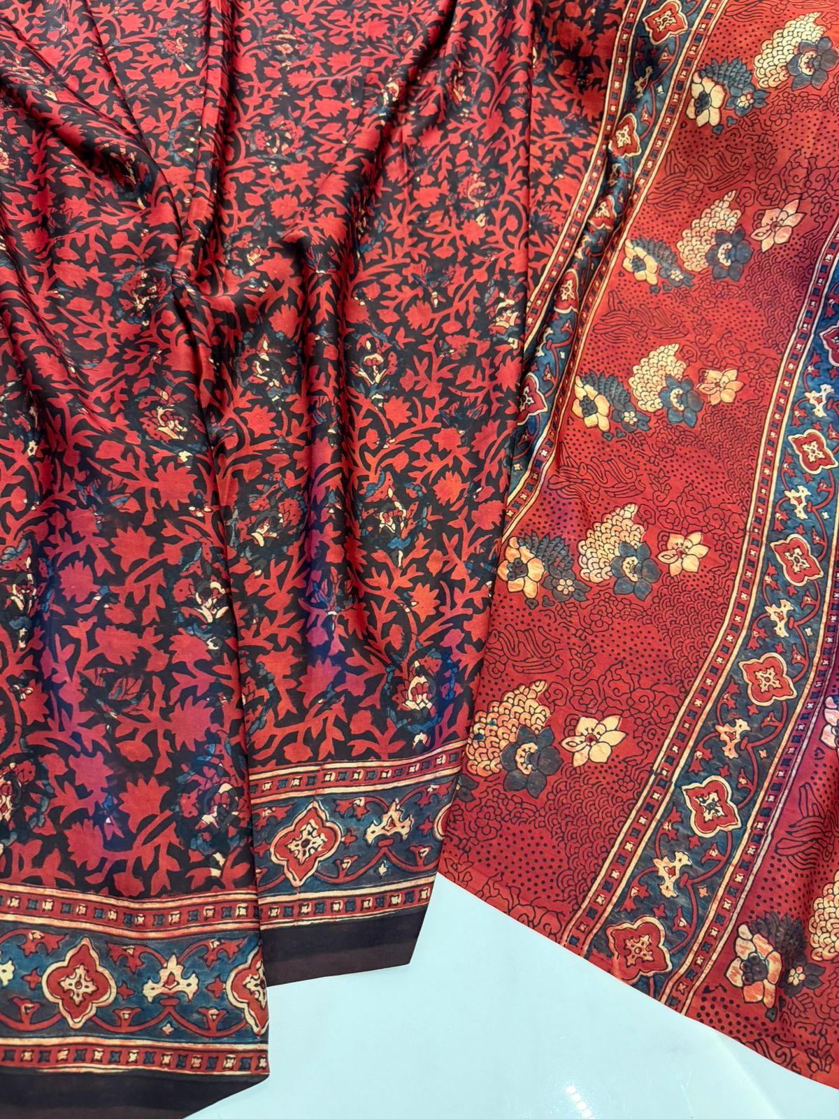 Celebrate timeless craftsmanship with this stunning maroon pure modal crepe silk saree, beautifully adorned with traditional Ajrakh hand block printing. Crafted from a luxurious blend of modal, crepe, and silk, this saree offers a soft, smooth texture with a fluid drape and a subtle sheen—perfect for effortless elegance.