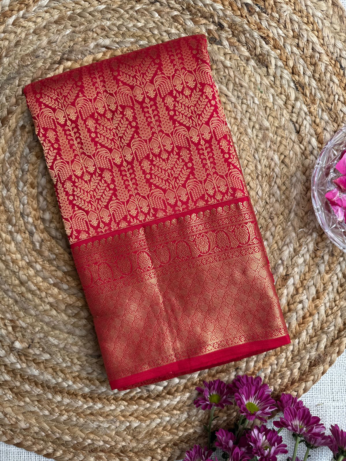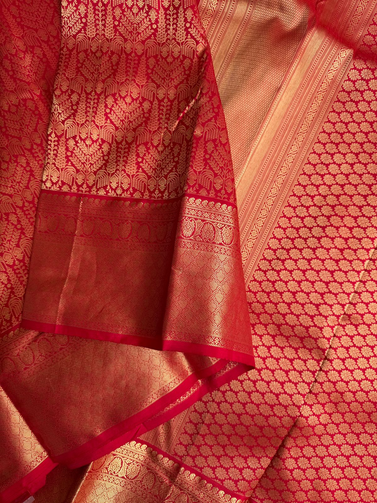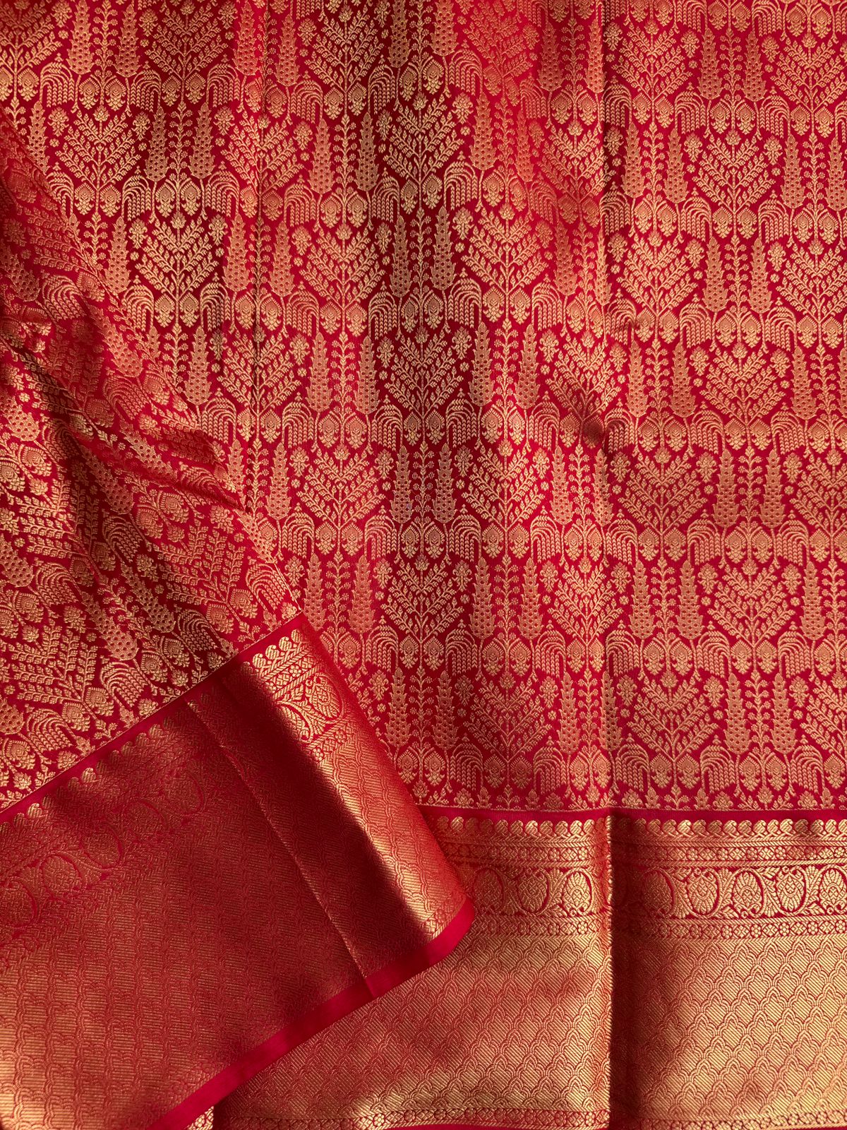 Carrot Red color Pure Kanjeevaram Brocade Silk Saree