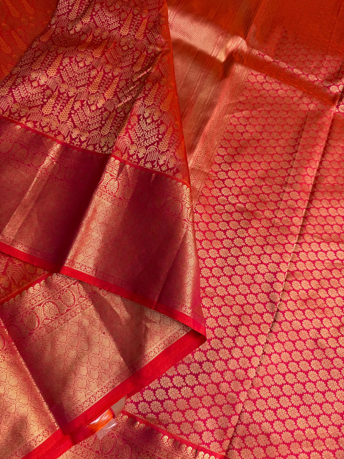 Magenta Two-tone color Pure Kanjeevaram Brocade Handloom Silk Saree