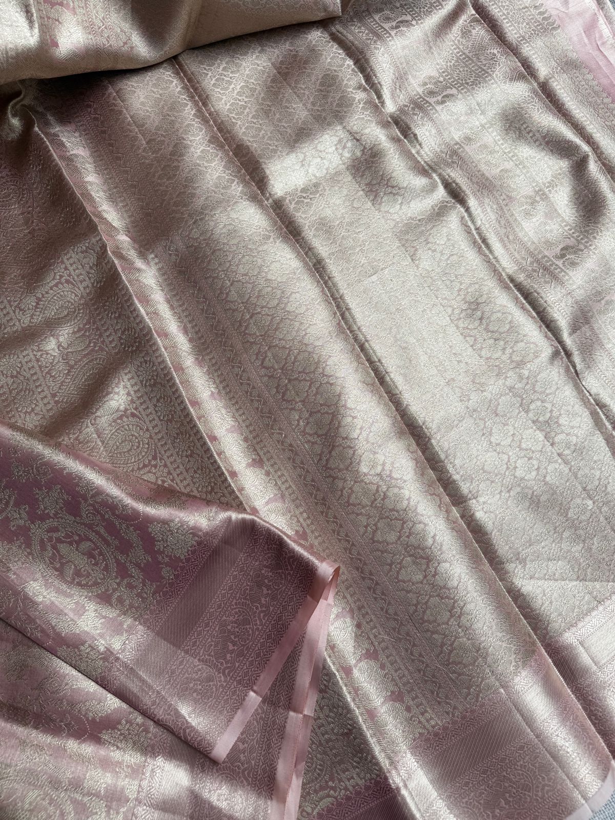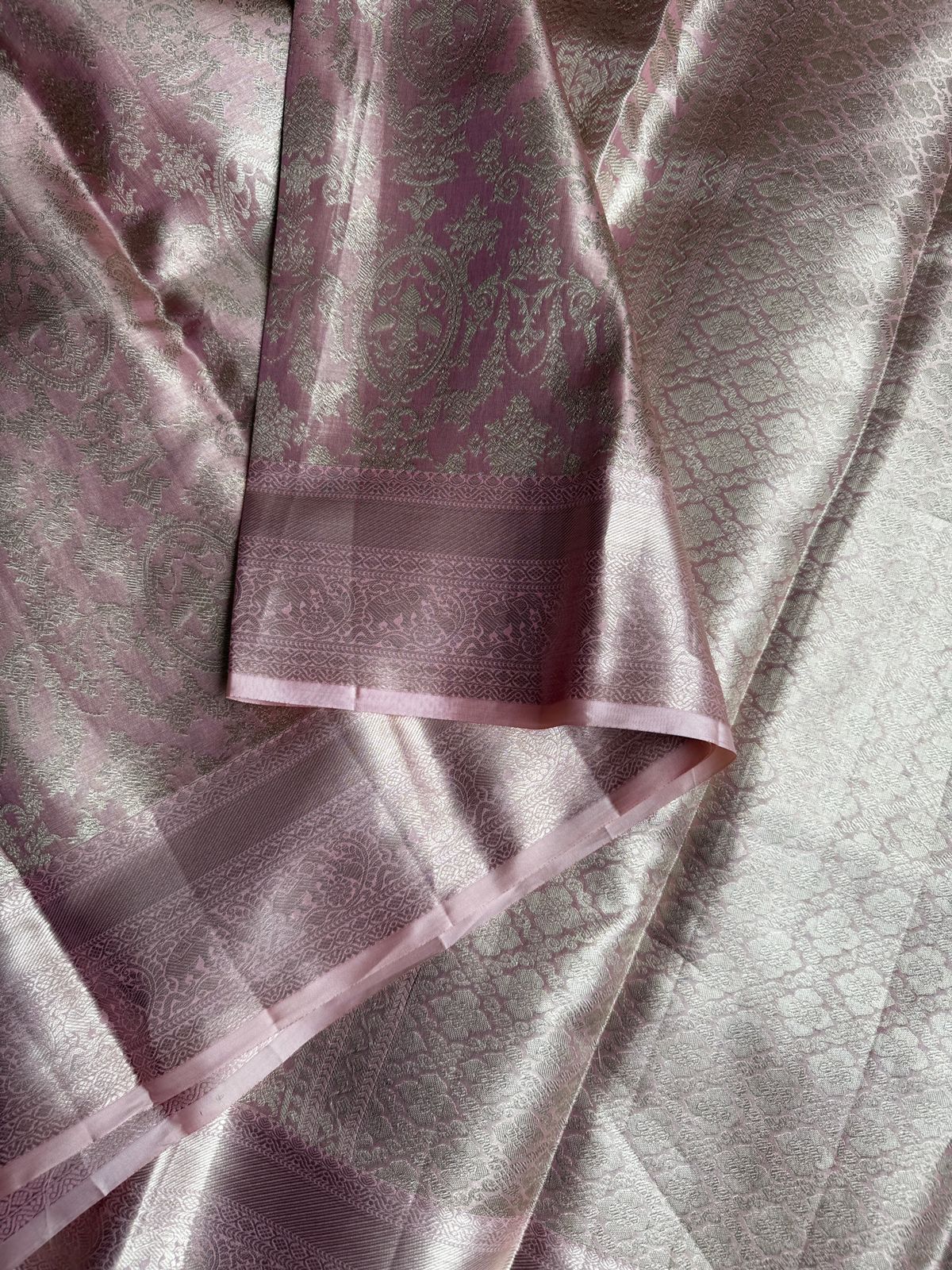 Rose Pink Pure Kanchi Handloom Tissue Silk Saree