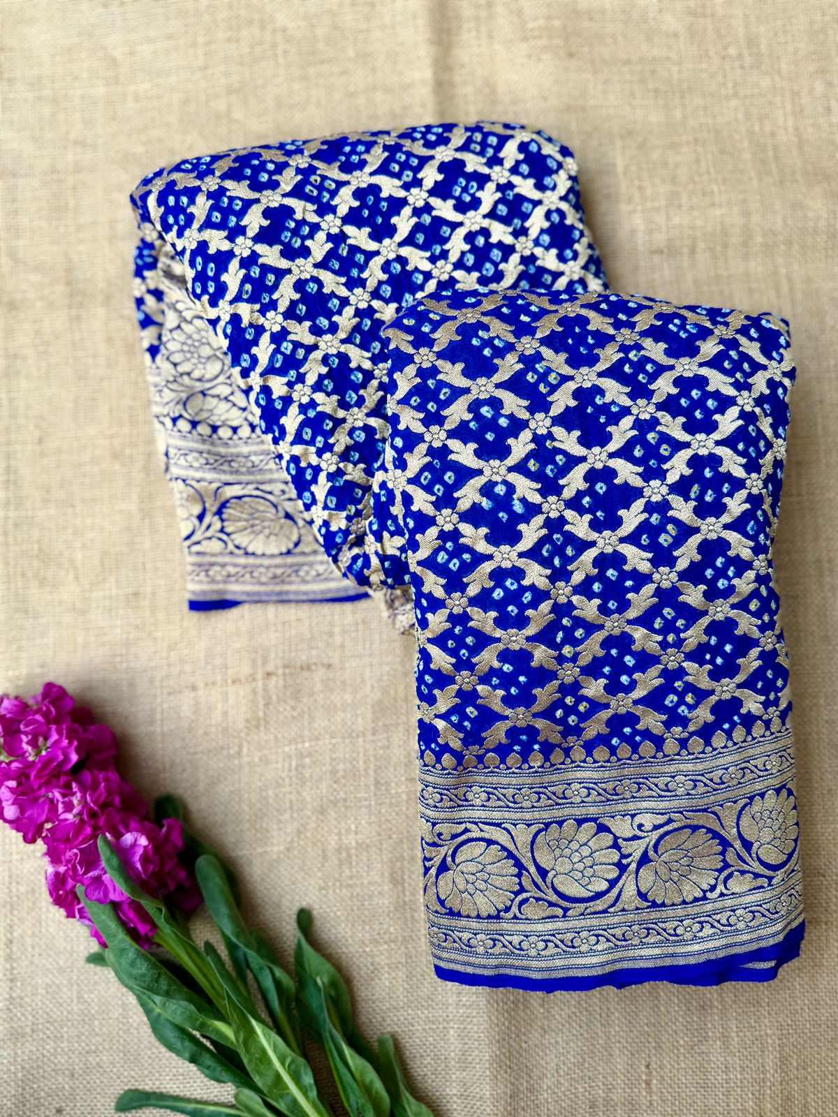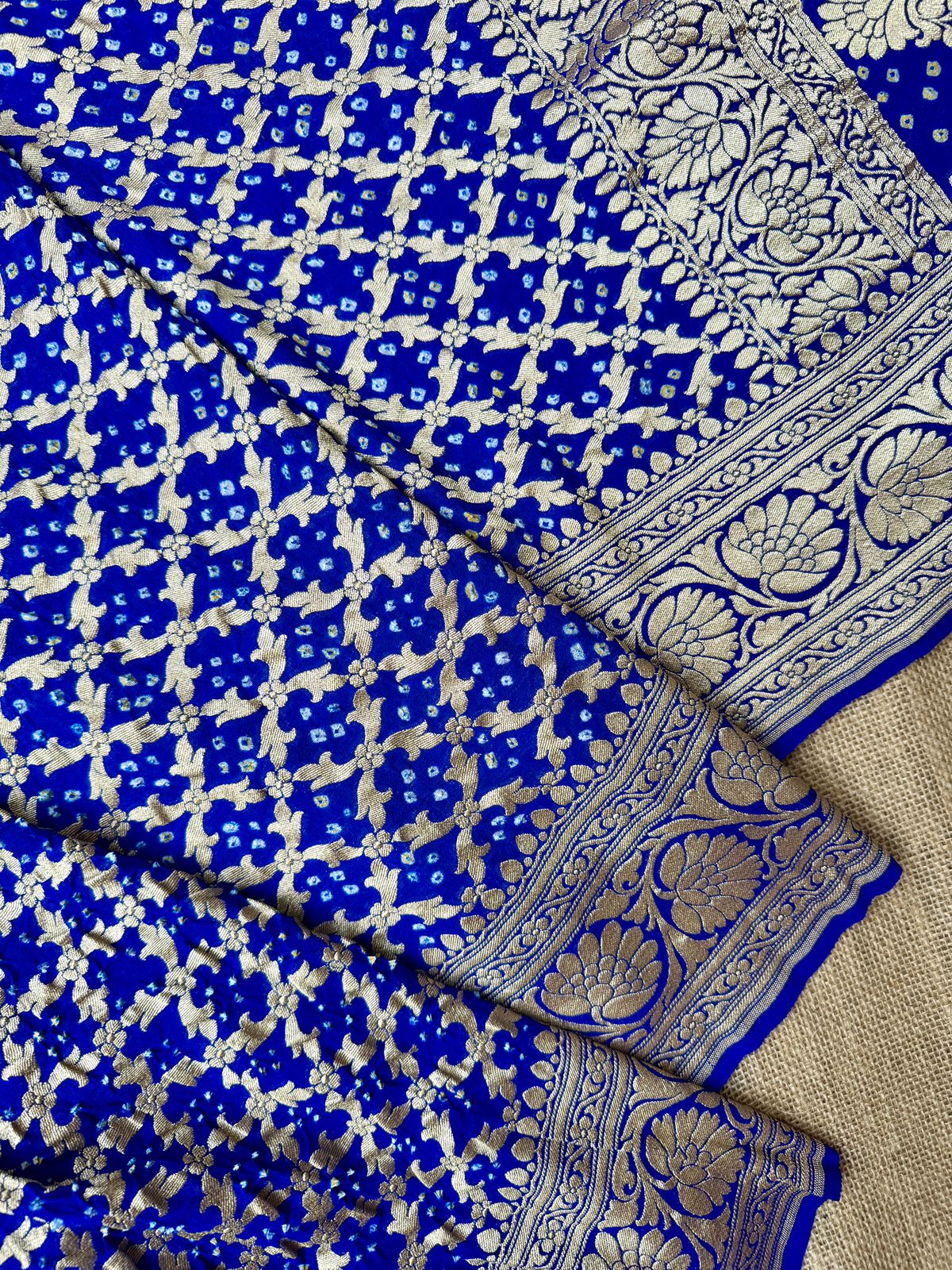 Graceful and rooted in tradition, this Blue Handloom Pure Khaddi Bandhani Saree is a timeless addition to any ethnic wardrobe. Crafted from soft and breathable pure khaddi fabric, it offers a lightweight yet luxurious drape that enhances every silhouette.