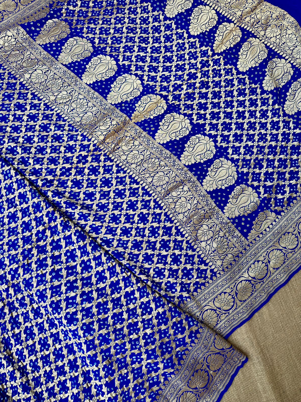 Blue color Handloom Pure Khaddi Bandhani Saree with all over weaving