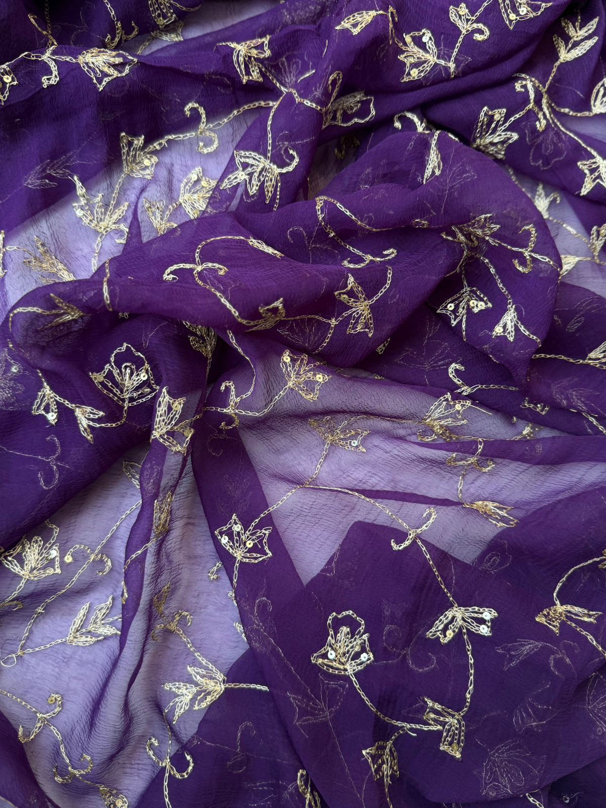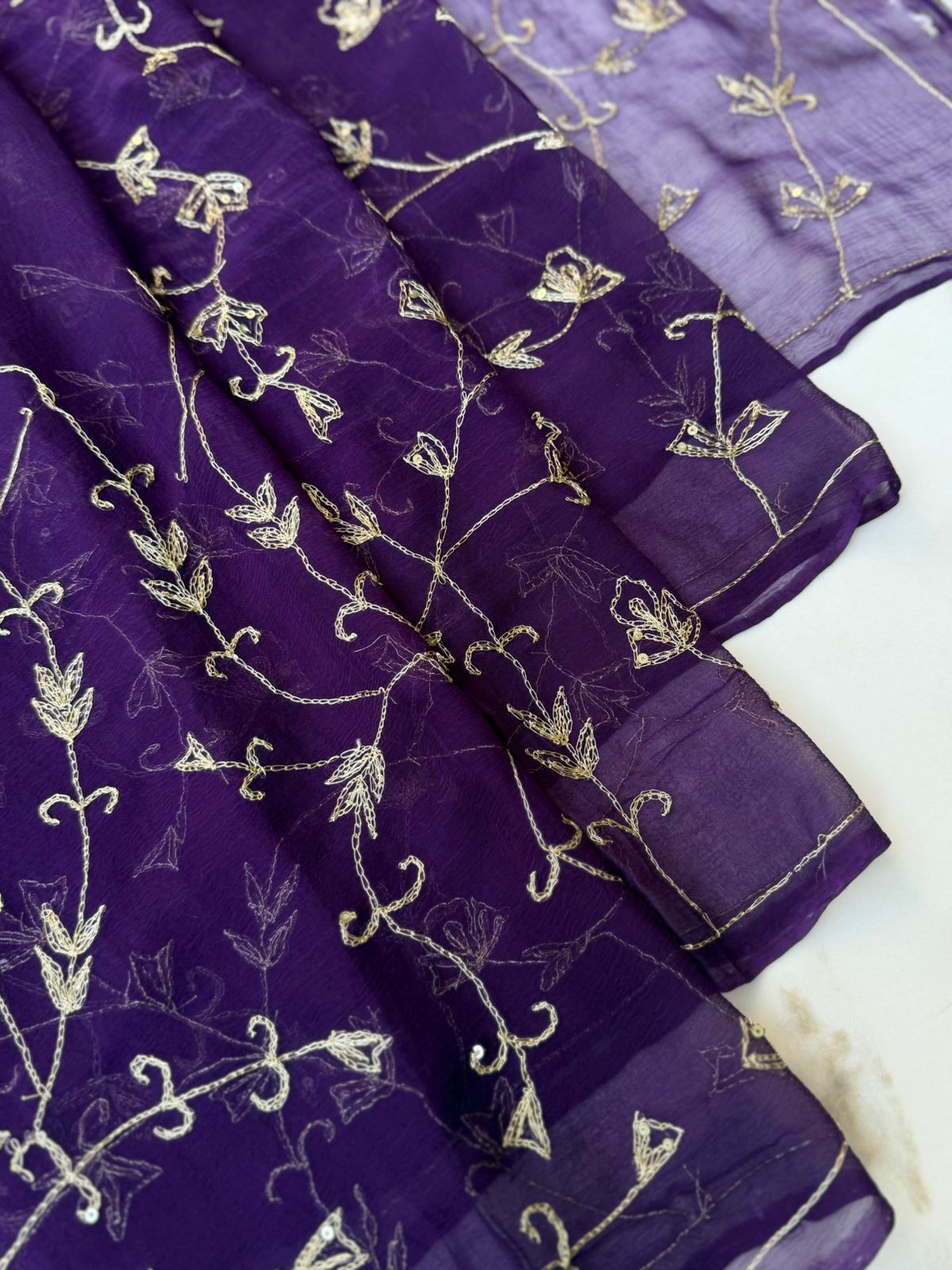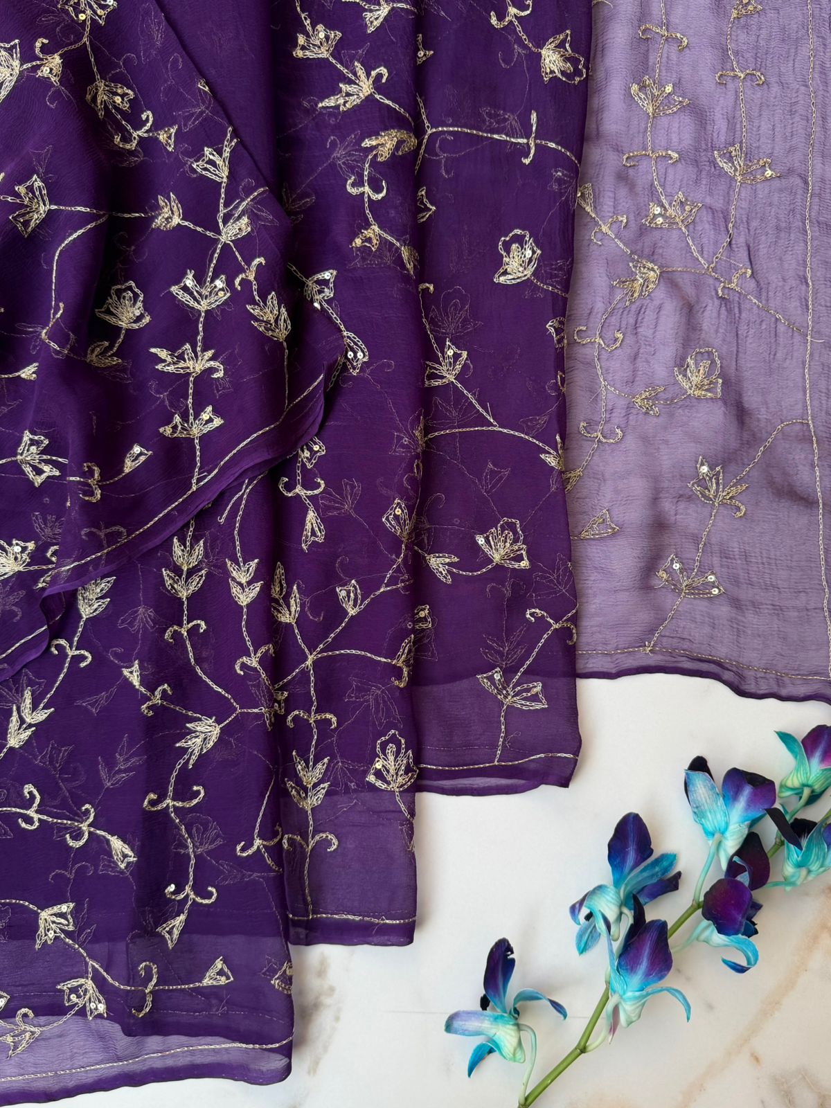 Dark Purple Chiffon Saree with Sequence and Kasab Embroidery Jaal