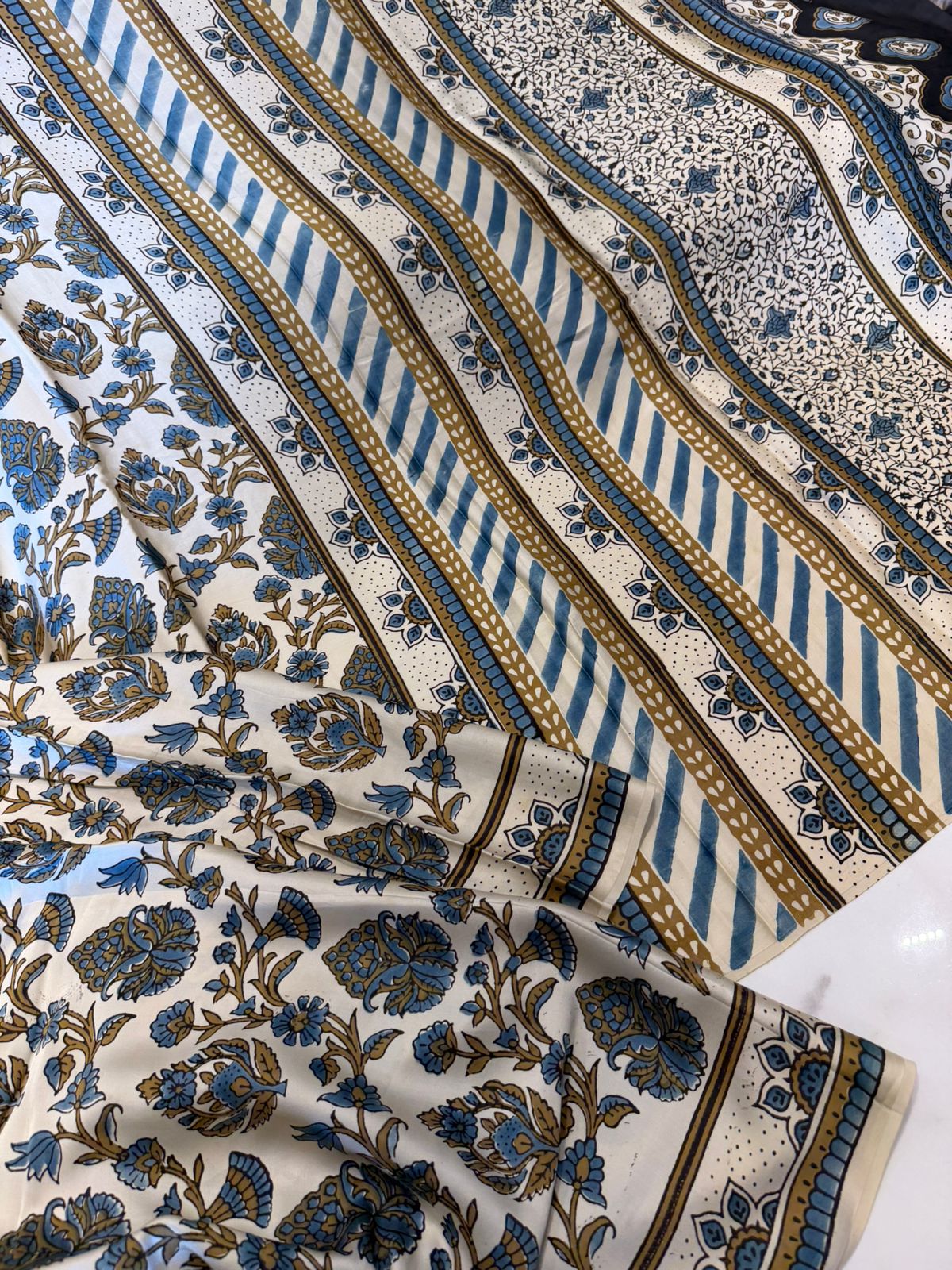 Embrace understated elegance with this beautiful ivory pure modal saree, adorned with traditional Ajrakh hand block printing. Crafted from soft and breathable modal fabric, this saree offers a smooth texture and a graceful, fluid drape—perfect for refined and effortless styling.