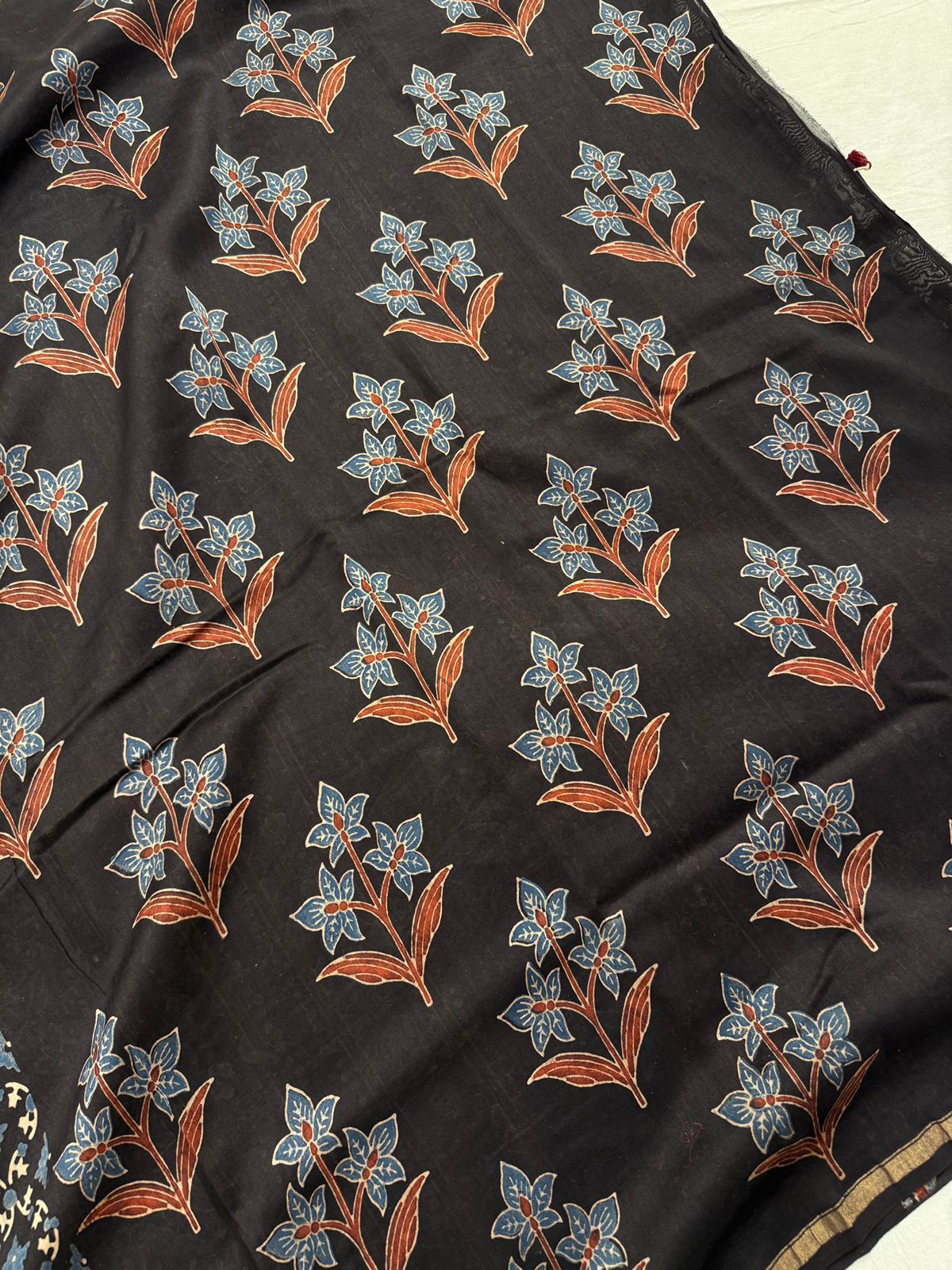 Pure Chanderi Black color Ajrakh Hand Block Printed Saree with Maheshw – Khiamalssarees