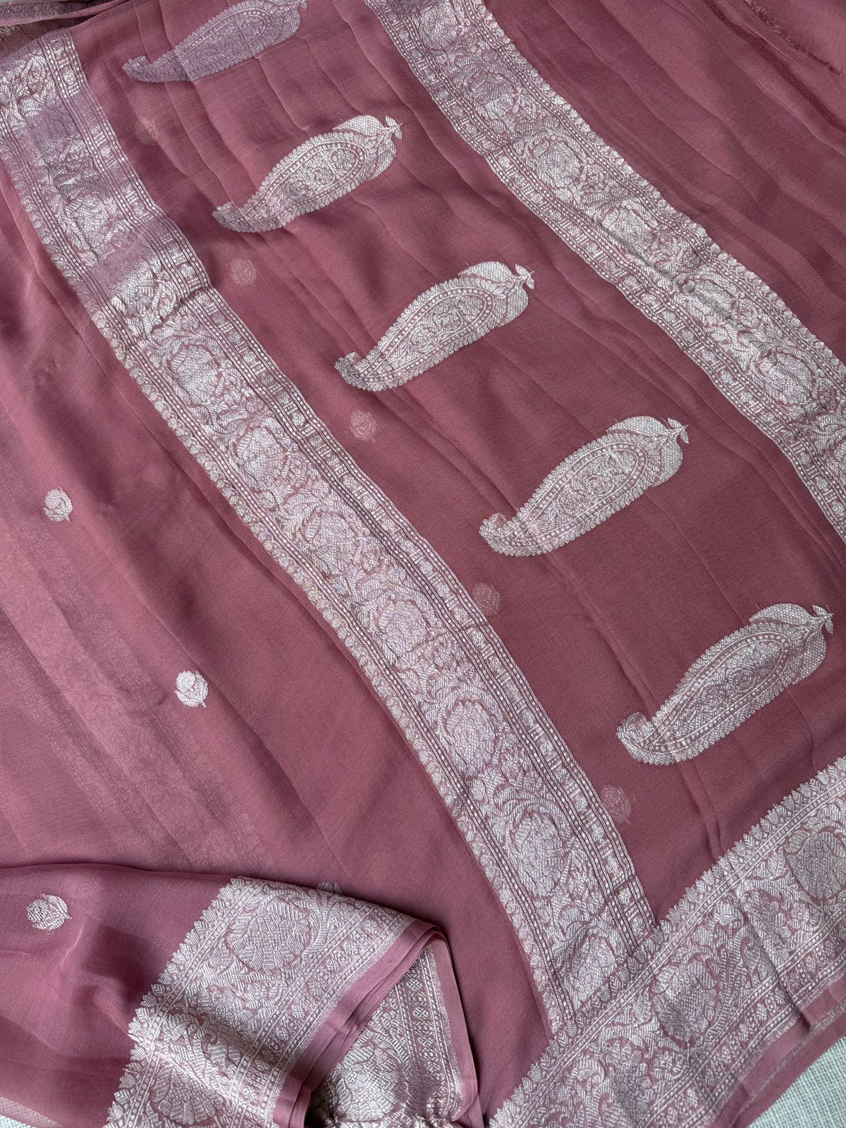 Pure Khaddi Hand Woven Benarasi Georgette Saree with zari weaving