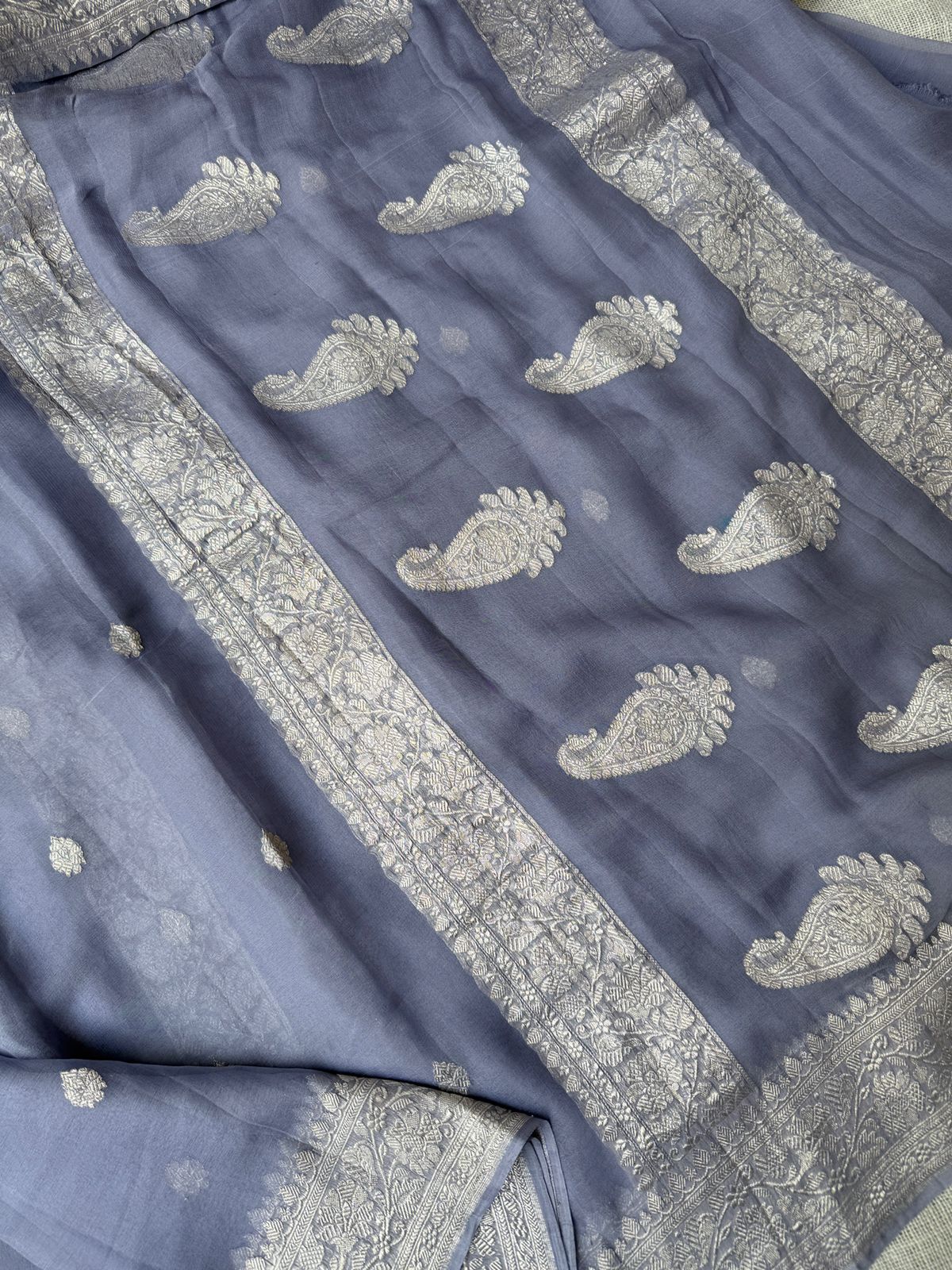 Pure Khaddi Hand woven Benarasi Georgette Saree with zari weaving